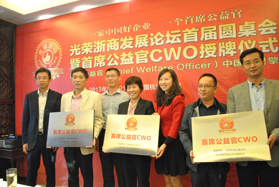 在10月21日的“光榮浙商發(fā)展論壇”首屆圓桌會暨首席公益官CWO授牌儀式上,廣廈控股集團董事局榮譽主席樓忠福呼吁,中國好企業(yè)應當設立首席公益官:“我們的目標,讓浙商都成為‘光榮浙商’,讓企業(yè)中專設‘首席公益官’成為現(xiàn)代企業(yè)管理機制中的常規(guī)動作,讓更多的企業(yè)家參與到社會管理體系中成為公益事業(yè)中堅力量。”